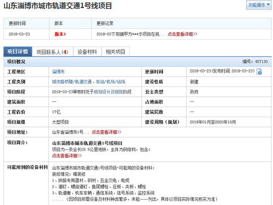 信息顯示淄博市軌道交通1號線項(xiàng)目為一條全長28.5千米地鐵,連接桓臺至淄博火車站。建設(shè)周期(規(guī)劃)2019年1月至2020年10月。